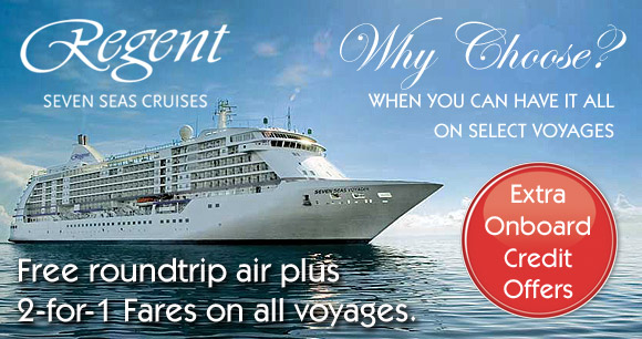Why Choose Offer of FREE Unlimited Internet Access, $300 Shipboard Credit per suite and Business Class Air from $799 per person each way is for new bookings made between March 5 through September 30, 2013 on featured sailings when promo code: EUROPE2013 is mentioned at time of booking.Seven Seas Voyager® November 12, 2013 voyage is eligible for $799 Business Class Air upgrade to Istanbul only. Seven Seas Mariner® November 20, 2013 voyage is eligible for $799 Business Class Air upgrade to Barcelona only. Business Class Air is $999 per person each way on Seven Seas Mariner® September 25, 2013, October 7, 2013 and October 31, 2013 voyages. Limited time offer. At the time of your purchase, fares may be higher. For current fares and promotional offers, see www.RSSC.com or call 1.800.285.1835. Exclusive offer of FREE Unlimited Internet Access, $300 Shipboard Credit and Business Class Air from $799 per person is for new bookings only made by September 30, 2013 on featured sailings when promotional code: EUROPE2013 is mentioned at time of booking. 2-for-1 Fares are based on published Full Brochure Fares; fares may not include Personal Charges, Optional Facilities and Services Fees as defined in the Terms and Conditions of the Guest Ticket Contract. Why Choose $300 Shipboard credit is per suite, is not transferable and cannot be redeemed for cash. Why Choose Offers are capacity-controlled and can be withdrawn at anytime without notice. *Air Inclusive Program applies to economy, roundtrip flights only from select U.S. & Canadian gateways: ATL, BOS, CLT, DFW, DEN, DTW, EWR, FLL, HNL, IAD, IAH, JFK, LAX, LGA, MCO, MIA, MSP, ORD, PBI, PHL, PHX, SAN, SAV, SEA, SFO, TPA, YUL, YVR, YYC and YYZ (supplement will apply to HNL, SAV and YYC on voyages beginning November 10, 2013). +Free air from DTW available from August 1 through December 31, 2013. Advertised fare includes all air surcharges, airline fees and government taxes. Business Class Air applies to international flights from the select U.S. & Canadian gateways mentioned above and may not apply to U.S. domestic or intra-continental flights within North America, Europe, South America, Asia or Africa. Flights beginning or ending in HNL require a supplement. Advertised fare includes all air surcharges, airline fees and government taxes. Some airline-imposed personal charges, including but not limited to baggage, priority boarding, and special seating, may apply. For details visit exploreflightfees.com. Air routing, scheduling and air carrier are at the discretion of Regent Seven Seas Cruises®. Air Inclusive Program and Air Upgrade Offers are not combinable with 3rd and/or 4th guests in a suite. FREE 1-Night Pre-Cruise Luxury Hotel Package applies for guests 1 and 2 only, and will not be available for new bookings made within 60 days of voyage departure. Also at 60 days prior to sailing for existing bookings, guests will not be able to transfer to an alternate hotel. Due to capacity limitations hotels may not be available at 60 days. Hotels are subject to change without notice. Upgraded Pre-Cruise Luxury Hotel Package for Concierge Suites and higher includes a Premium hotel property or upgraded room at the Standard hotel property. Transfers from the Airport to the Hotel are FREE when you book your air with Regent Seven Seas Cruises®. FREE Unlimited Shore Excursion reservations are accepted on a first-come, first-served basis and number of shore excursions are subject to availability. Restrictions apply and cancellations received 36 hours prior to shore excursion start date may incur penalties. Regent Seven Seas Cruises® reserves the right to correct errors or omissions and to change any and all fares or promotional offers at any time. Complete terms and conditions may be found in the Guest Ticket Contract. Hermès® is a registered mark of Hermès International. L'Occitane® is a registered mark of L'Occitane, S.A. Ships' Registry: Bahamas. ©2013 Regent Seven Seas Cruises®. |